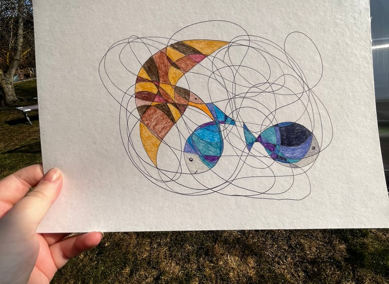 Simbolio piešimas pagal meninius fraktalus ir gilinimasis į vidinio pasaulio kalbą per simbolius ir spalvas - gyvai arba online